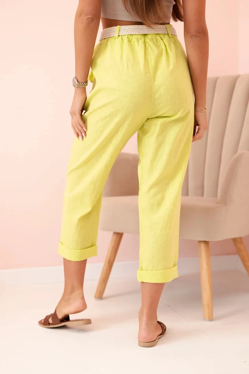 Dámske ľanové nohavice s bavlneným a kiwi opaskom UNI