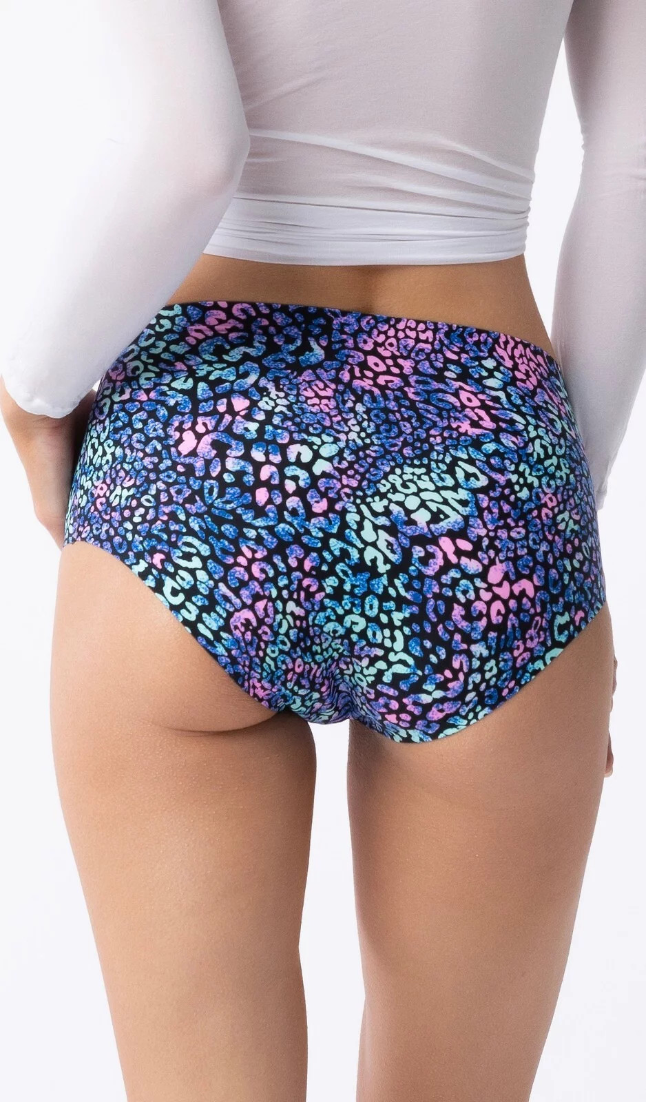 Dámske nohavičky - maxi strih, vysoký nárast - širšie a plnšie boky - farebná tlač - laserom rezané, bezšvové - neviditeľné pod priliehavým oblečením Zloženie: 89% polyamid, 10% elastan, 1% bavlna