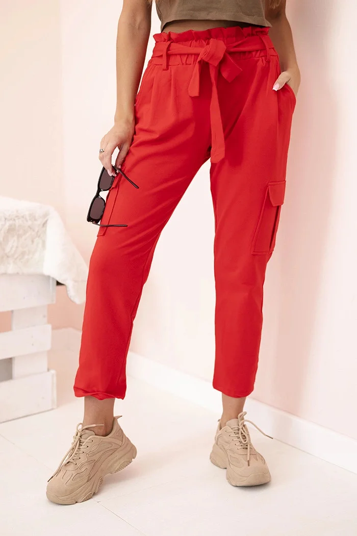 Dámske nákladné nohavice s vysokým pásom červené UNI