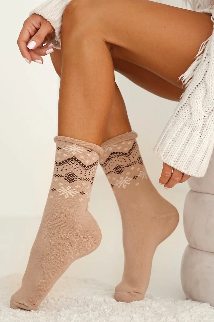 Dámske zimné ponožky - zdobené farebnými zimnými hviezdičkami - teplé froté na vnútornej strane - široký, netlačiaci pás Zloženie: 75 % bavlna, 20 % polyamid, 5 % elastan
