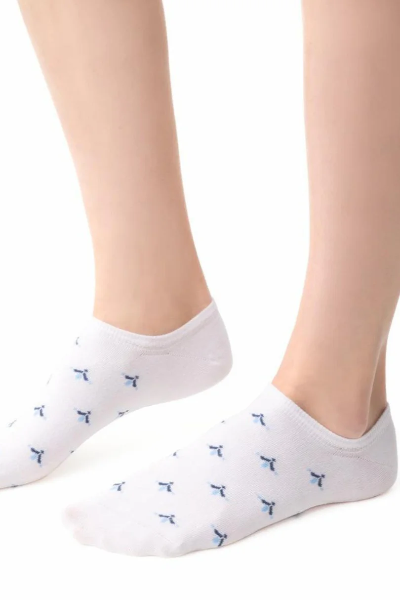 Stopki wzorowane damskie, doskonałe do mokasynek. Wykonane z wysokiej jakości bawełny z dodatkiem włókien elastycznych. Wygodny nieuciskający ściągacz.