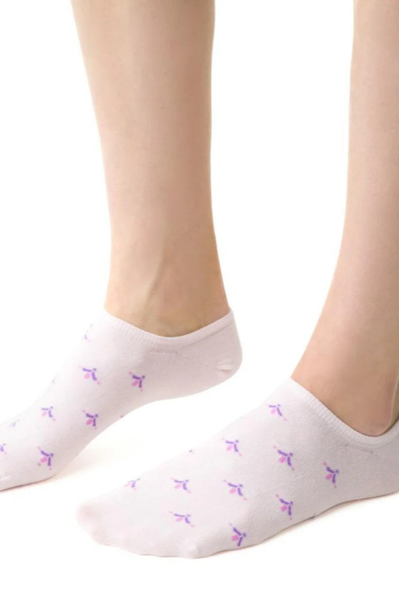 Stopki wzorowane damskie, doskonałe do mokasynek. Wykonane z wysokiej jakości bawełny z dodatkiem włókien elastycznych. Wygodny nieuciskający ściągacz.
