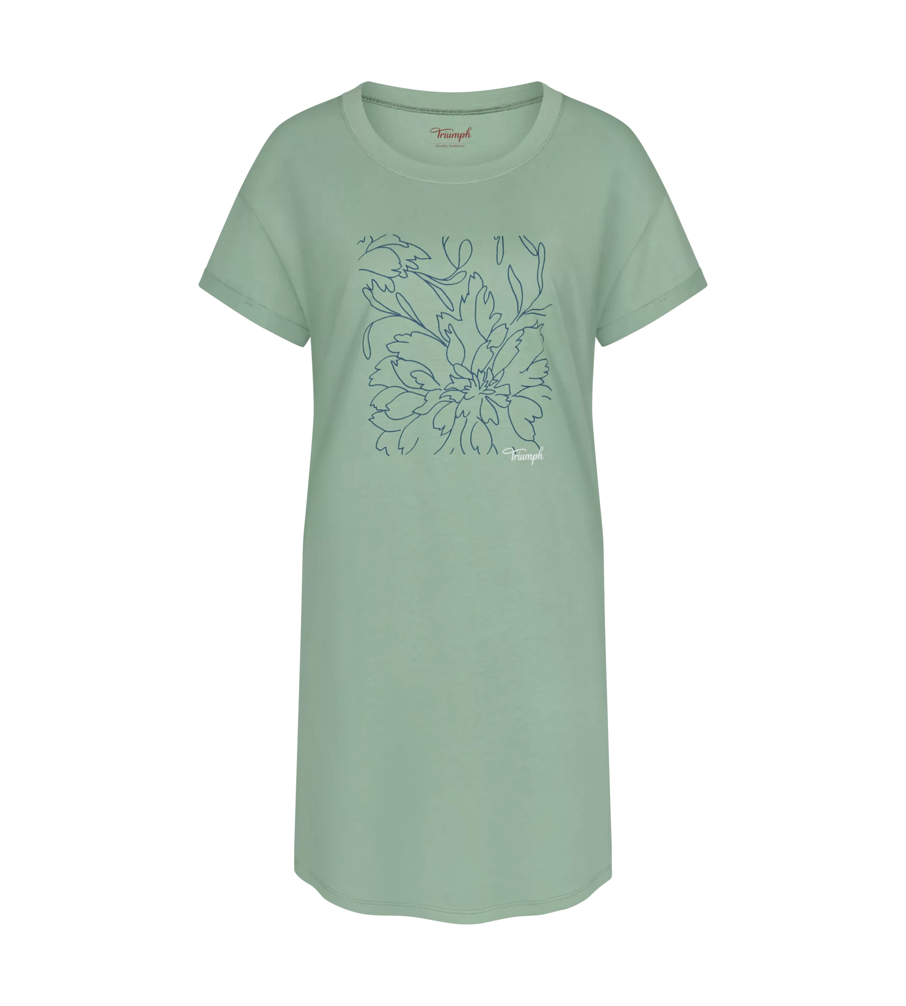 Nočná košeľa Triumph má jednoduchý a krásny dizajn a je radosť ju nosiť. Oblečte si ju a cíťte výnimočné pohodlie! Pohodlný, krátky, voľný strih Okrúhly výstrih s mini rebrovaným lemom Potlač na prednej strane s kovovými detailmi Krátke rukávy 100 % bavlna
