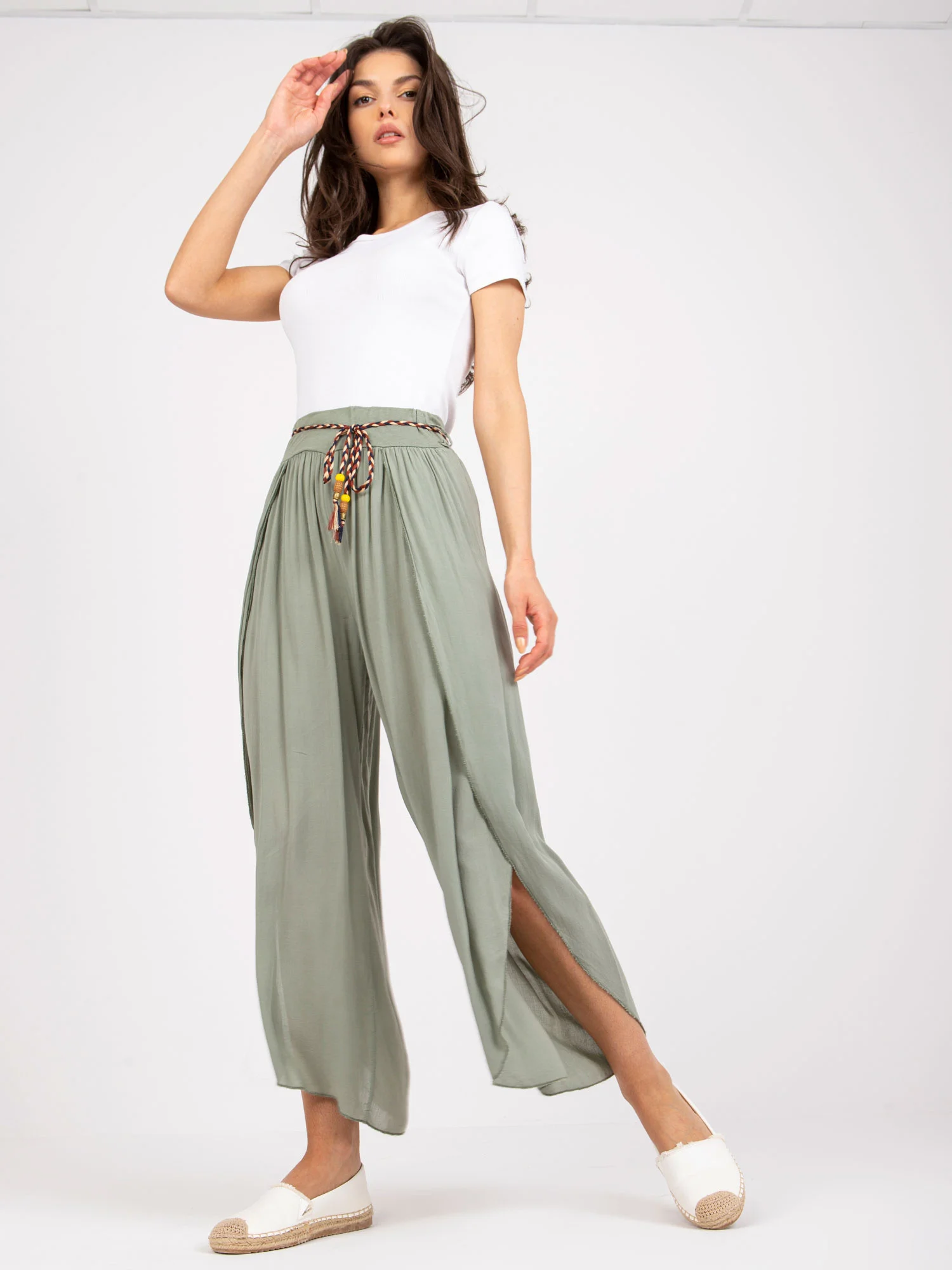 zloženie látky: 100% viskóza spôsob prania: pranie v práčke na 30 °C Modelka má na sebe veľkosť S. Rozmery modelky: výška 173 cm, prsia 85 cm, pás 62 cm, boky 95 cm. Rozmery nohavíc veľkosti S merané na plocho: šírka v páse - 32 cm, dĺžka nohavíc - 93 cm, výška v páse - 34 cm.Medzinárodná veľkosť Výška Obvod pása Obvod bokov Vonkajšia dĺžka nohavíc Dĺžka vnútornej nohavice S 36 160-168 72-80 90 87 74 M 38 162-172 78-86 94 90 75 L 40 164-174 84-90 102 94 76 XL 42 166-178 88-96 106 98 77