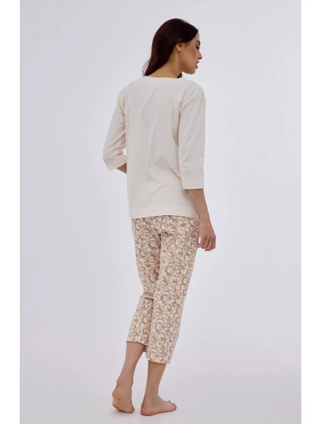 Dámske pyžamo - vysokokvalitná bavlna - tričko s 3/4 rukávmi - výstrih do V - vzorované nohavice - dĺžka 7/8 - saténová stuha uviazaná v páse Zloženie: 100 % bavlna