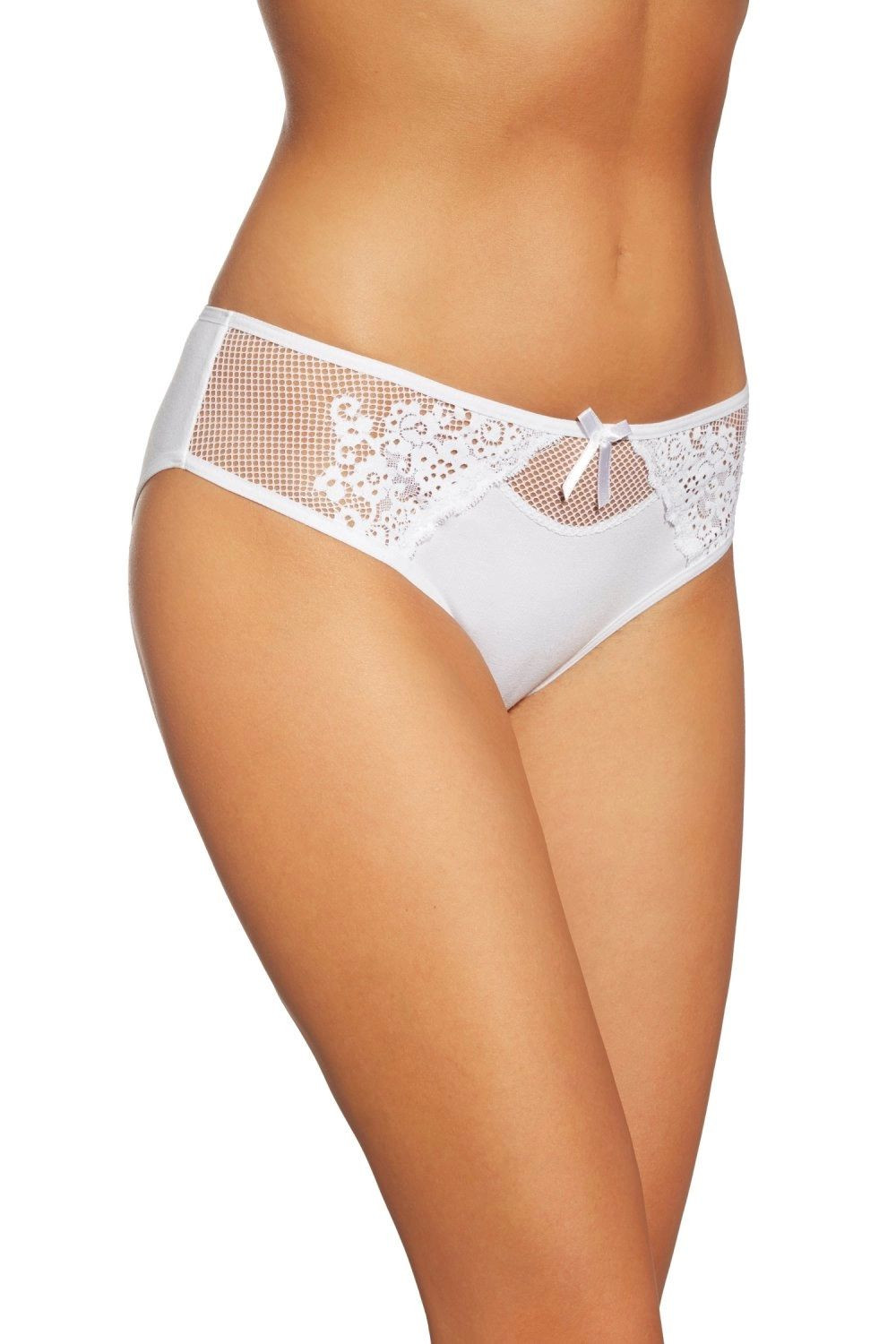 Dámske nohavičky 109 white Gabidar - biela farba - klasický strih - zdobené jemným tylom s kvetinovou výšivkou v rovnakej farbe - romantický dizajn - roztomilá mašlička na hornom leme Zloženie materiálu: 95% bavlna + 5% elastan
