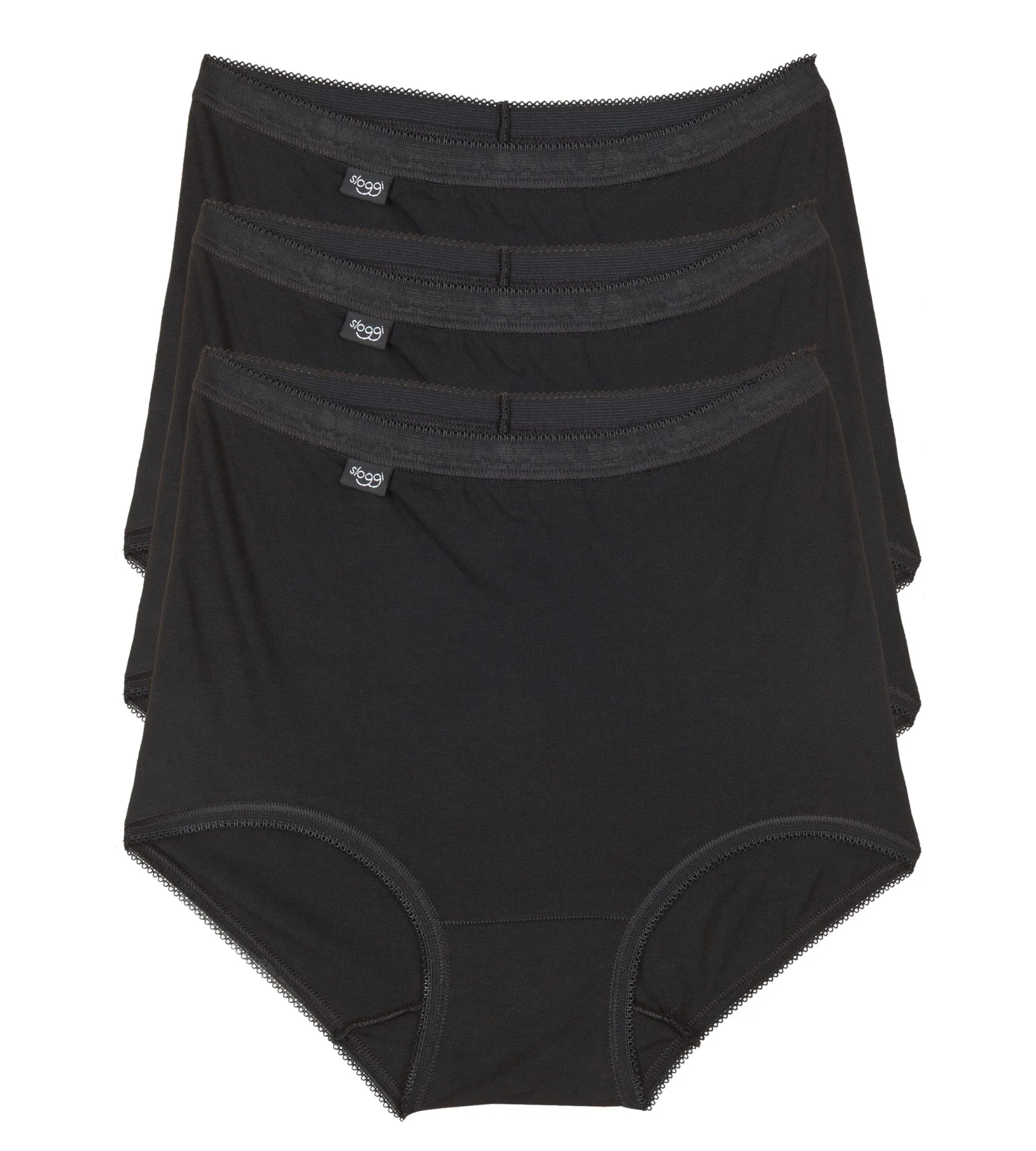 Dámske nohavičky Basic maxi black Sloggi - čierne - 3 ks v balení - vyrobené z vysoko kvalitnej bavlny - vlákna Coregarn zaisťujú pohodlie pri nosení a udržiavanie tvaru - 3 ks v baleníZloženie materiálu: 95% bavlna + 5% lycra