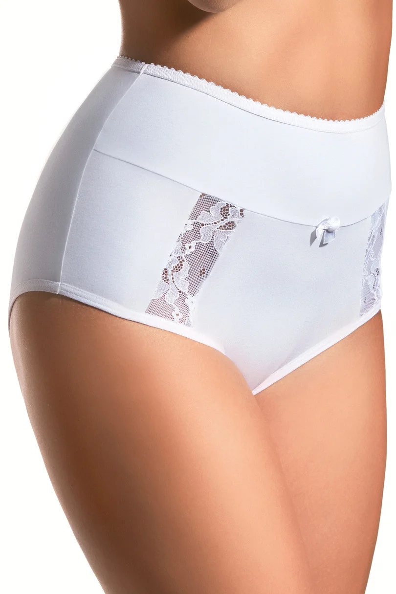 Dámske midi bikiny s vysokým pásom z kvalitného bavlneného úpletu s lycrou. Vystrihnutá predná časť zdobená malou mašličkou a čipkovanými vsadkami dodáva celku veľmi ženský nádych. Zloženie: 92 % bavlna 8 % elastan lycra. Lykra.