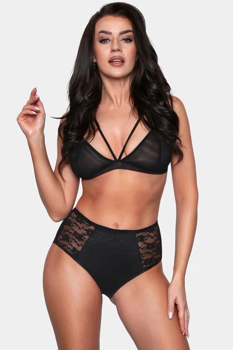 Nohavičky s vyšším pásom. Vpredu je čipka podšitá látkou, ktorá jemne modeluje bruško. Pozadie je bavlnené. 92% bavlna, 8% elastan.