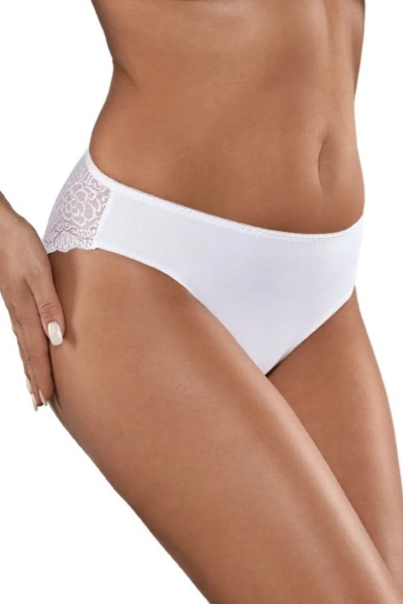 Dámske nohavičky bikín z kvalitného, jemného mikrovlákna. Zadná časť je zakončená pútavou, jemnou čipkou. Balené v škatuľke. Zloženie: 80 % polyamid, 20 % elastan.