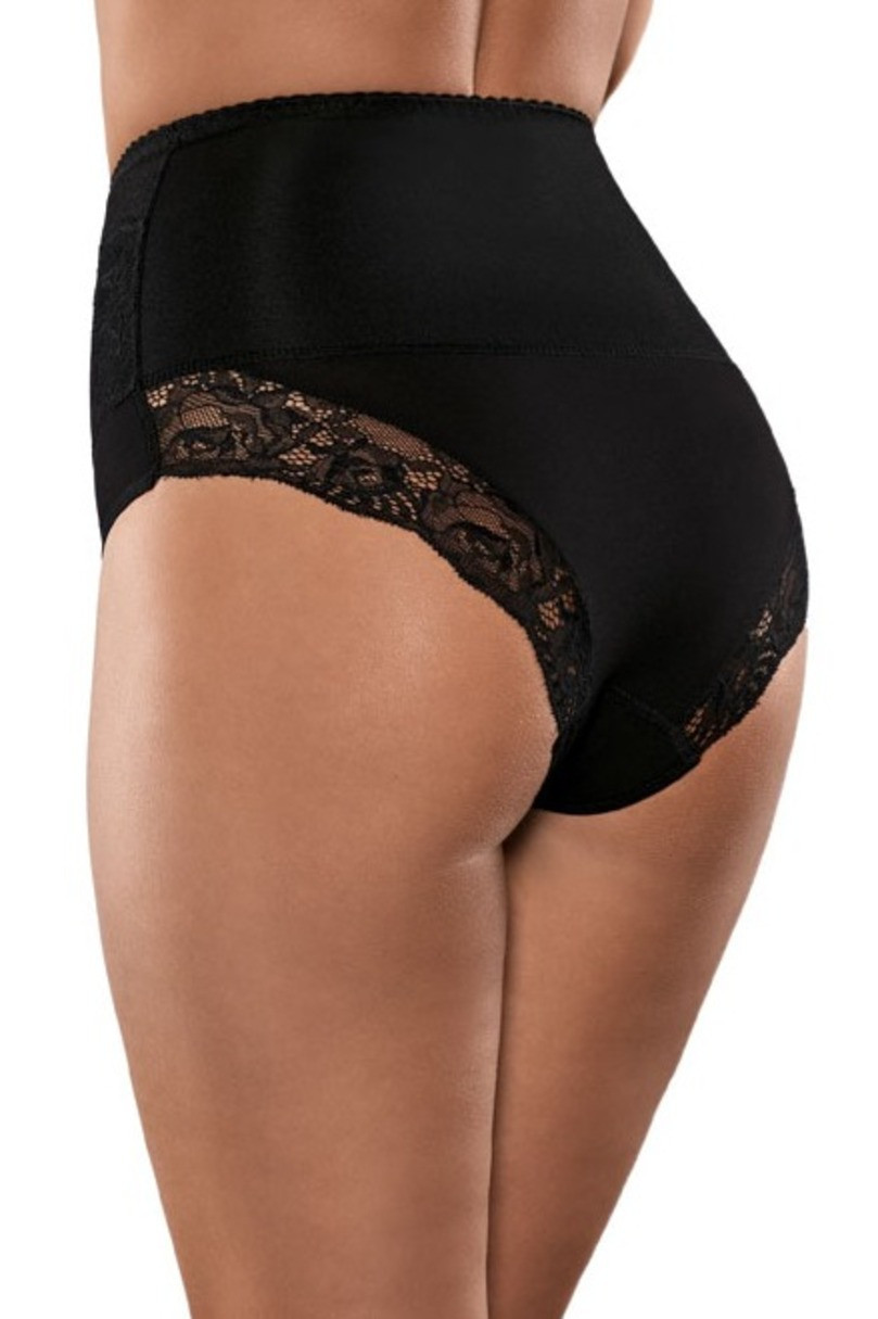 Ženské modelujúce nohavičky s vysokým, vstavaným strihom. Pás z nestahujúceho materiálu. Ideálne na korekciu bruška a bokov. Pás a zadoček zdobí jemná čipka s kvetinovým motívom. Spodná časť z bavlny. Zloženie: 92% bavlna, 8% elastan; pás 87% polyamid, 13% elastan .