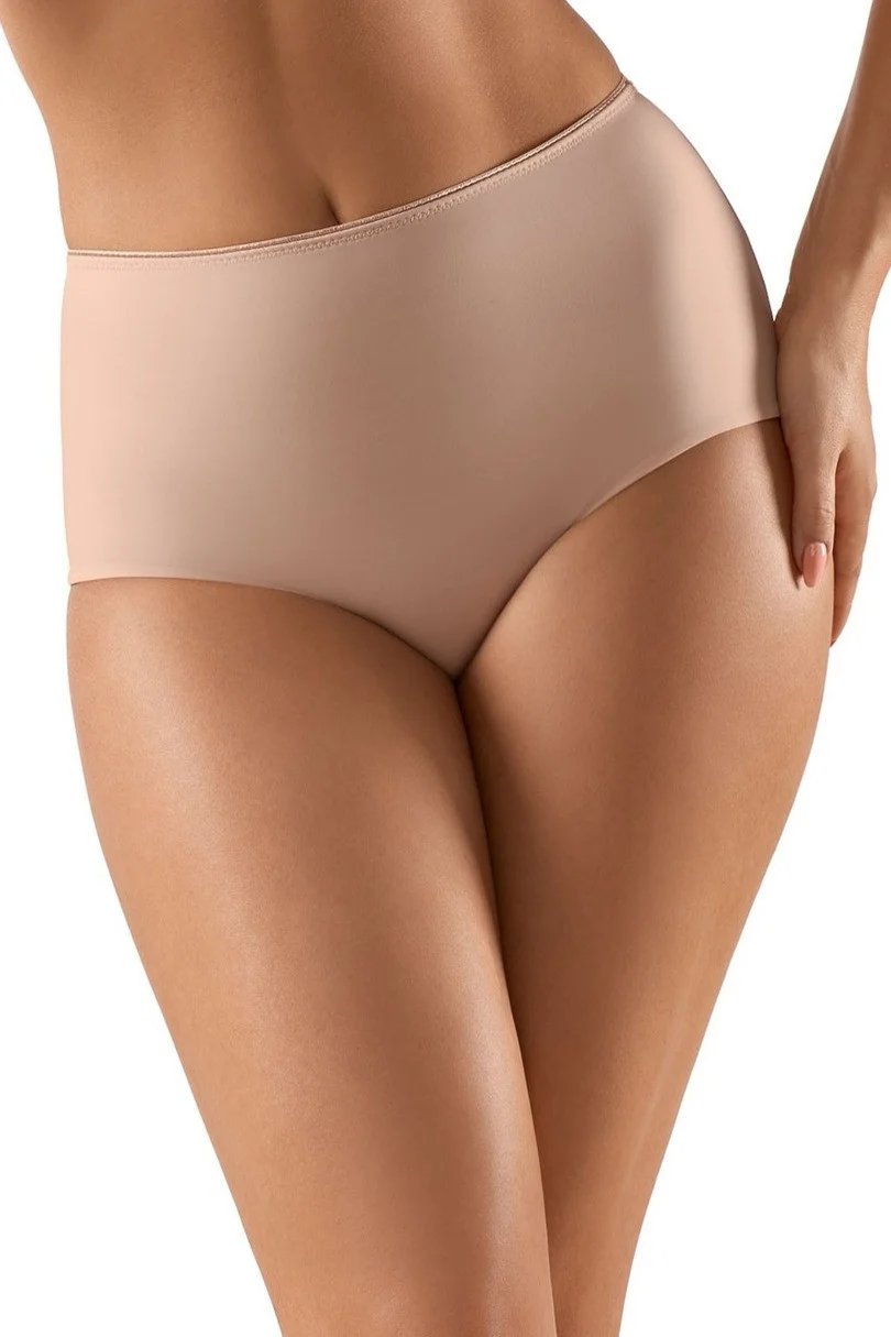 Hladké, modelujúci nohavičky ušité z elastického materiálu, predná strana je podšitá dodatočnou látkou pre ešte lepší efekt zoštíhlenie. Boky sú širšie, nohavičky vpredu obšité plochou gumka, vzadu strihané laserom. Zloženie: 80% polyamid, 20% elastan.