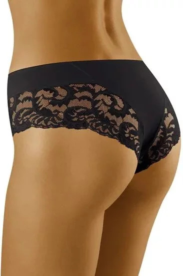 Elegantné dámske nohavičky - šortky so zníženým pásom. Prednú časť modelu zdobí kvetinová čipka, ktorá prechádza do zadnej časti nohavičiek. Zloženie: 83 % mikrovlákno (polyamid), 17 % elastan. S, M, L, XL. Farby: biela, čierna, béžová.