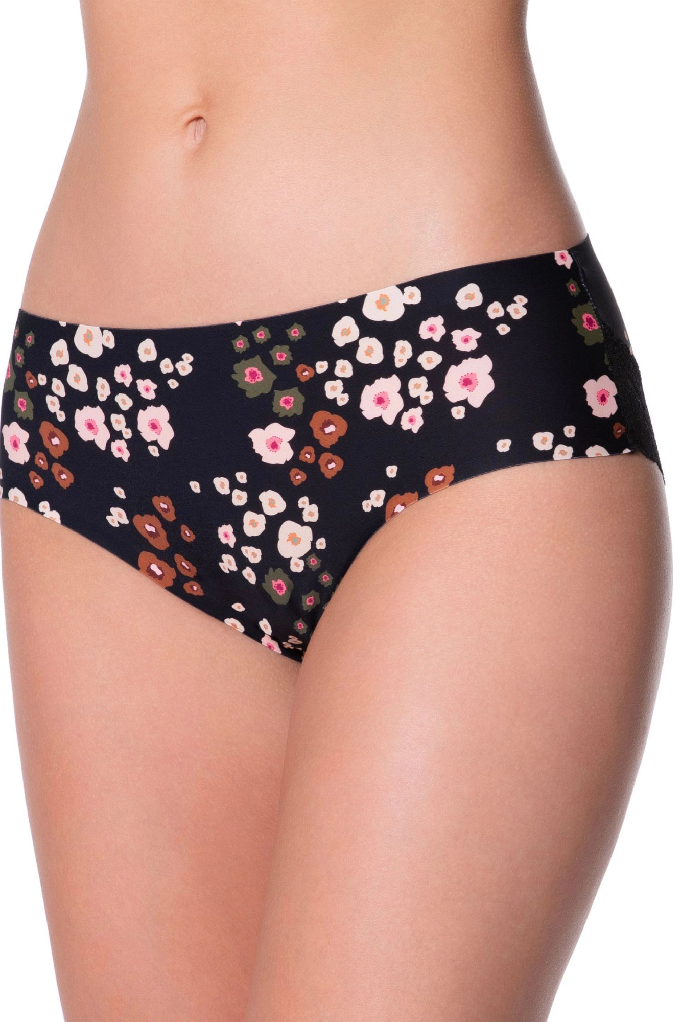 Dámske nohavičky Cheekie Peggy brown JULIMEX - hnedá farba - vyrobené z kvalitnej tkaniny - s kvetinovým vzorom - zadná časť zdobená čipkou - technológia INVISIBLE LINE pre ultratenké okraje - strihané laserom - neviditeľné pod oblečením Zloženie materiálu: 89% polyamid +10% elastan + 1% bavlna