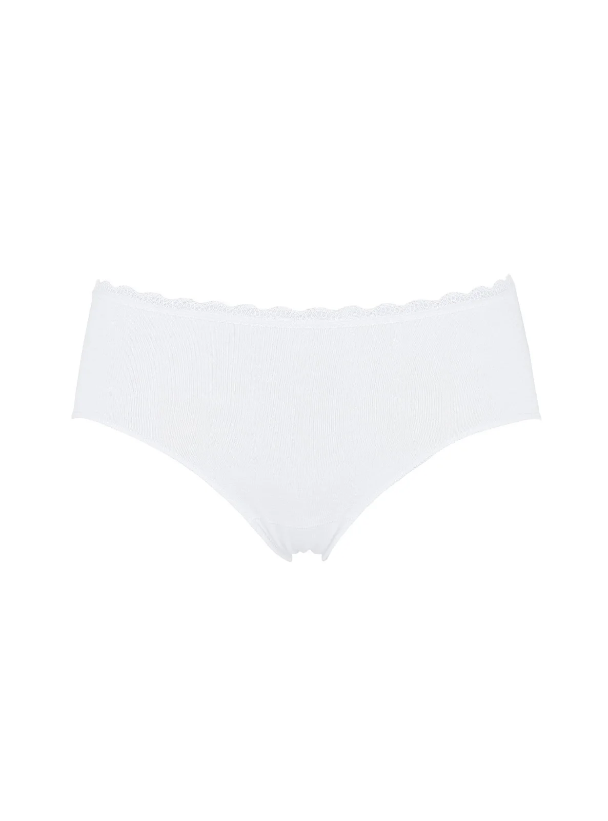 Dámske bikiny, klasický strih, hladké- vyrobené z mäkkej bavlny s prídavkom elastanu- zastavaná časť- opasok zdobený jemnou čipkou- ploché nohy- balené v kartónovej krabici po 3 kusochZloženie: 95% bavlna, 5% elastan