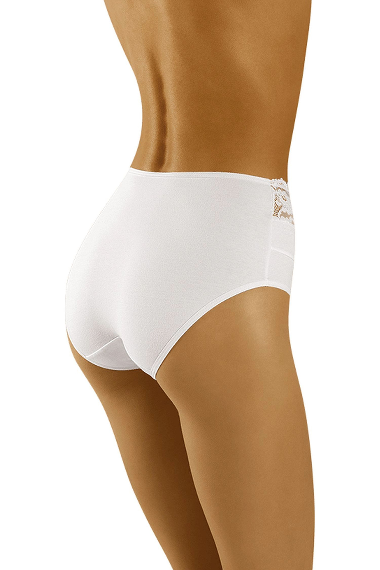 Dámske nohavičky Eco-HI Wol-bar - biela farba - vyrobené z kvalitnej bavlny - vyšší pás - pás zdobený kvetinovým motívom - zadná časť je hladká Zloženie materiálu: 90% bavlna + 7% elastan + 3% polyamid