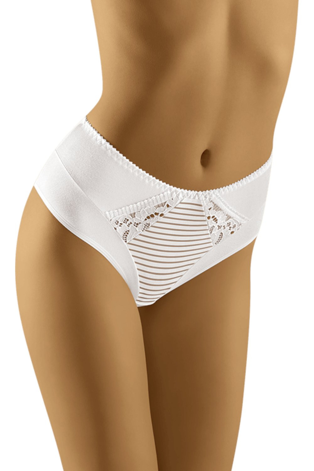 Pohodlné nohavičky Eco-Ka Wolbar - vyrobené z vysoko akostnej ekologickej bavlny - s vyšším pásom - vpredu krajková aplikácia a pruhovaný vzor - model vhodný pre ženy s plnšími tvarmi Materiálové zloženie: 90% bavlna + 7% elastan + 3% polyamid