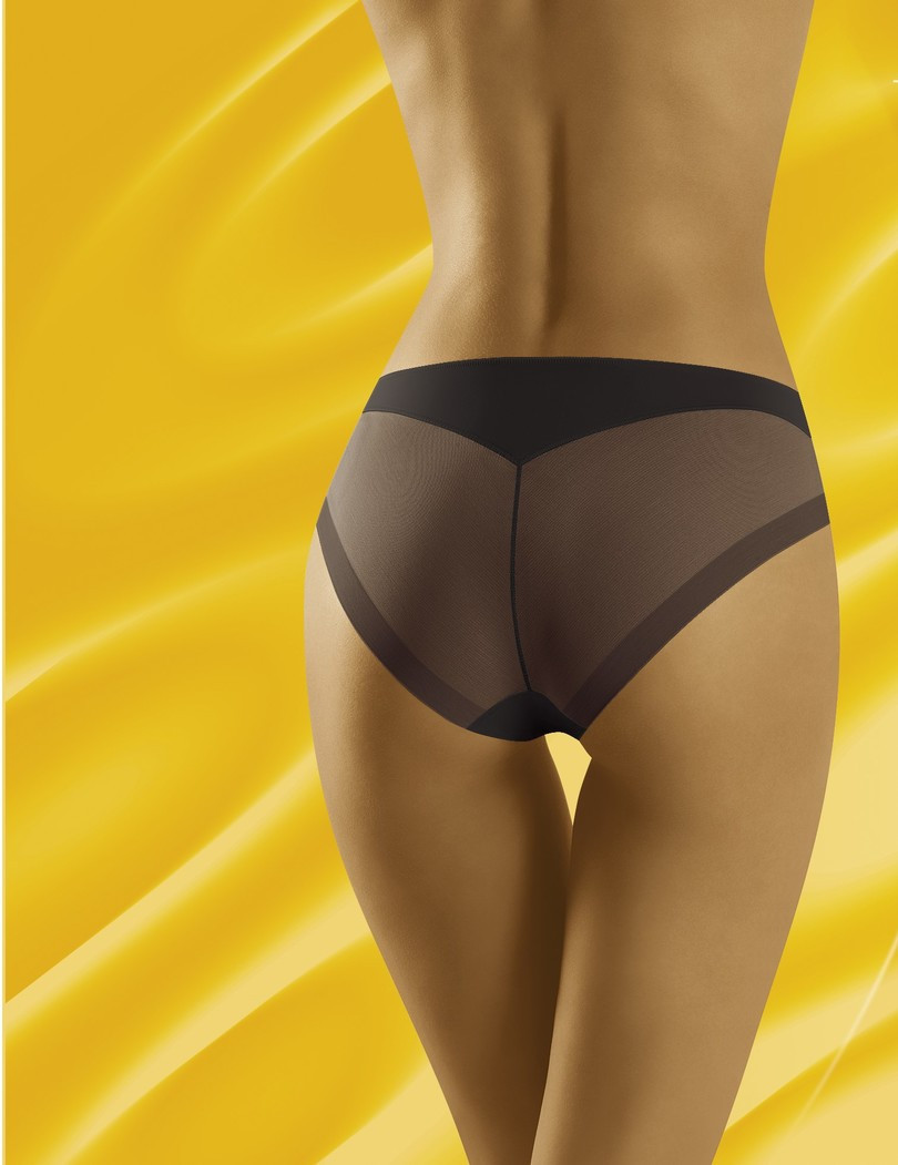 Dámske nohavičky klasického strihu značky Wolbar. Luxusné nohavičky kombinované hladkú látkou a pružným tylom na bokoch a zadnom diele. Do spodného dielu je zapracovaný bavlnený klin pre pohodlné nosenie. Materiálové zloženie: 58% polyamid, 42% elastan.