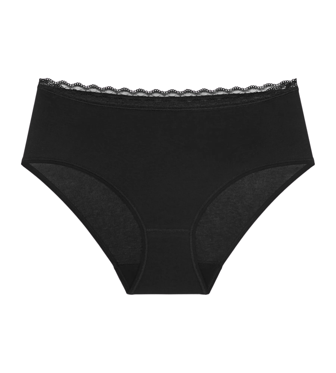 Moderný bezšvový dizajn. Vyrobené z jemnej organickej bavlny. Čipkované lemovanie dodáva eleganciu. Bezšvové midi nohavičky Vyrobené z organickej bavlny s certifikátom GOTS Pás s jemným čipkovým lemom Vyrobené v Európe OEKO-TEX® STANDARD 100, 93.0.3130 Hohenstein HTTI 92 % bavlna, 8 % elastan