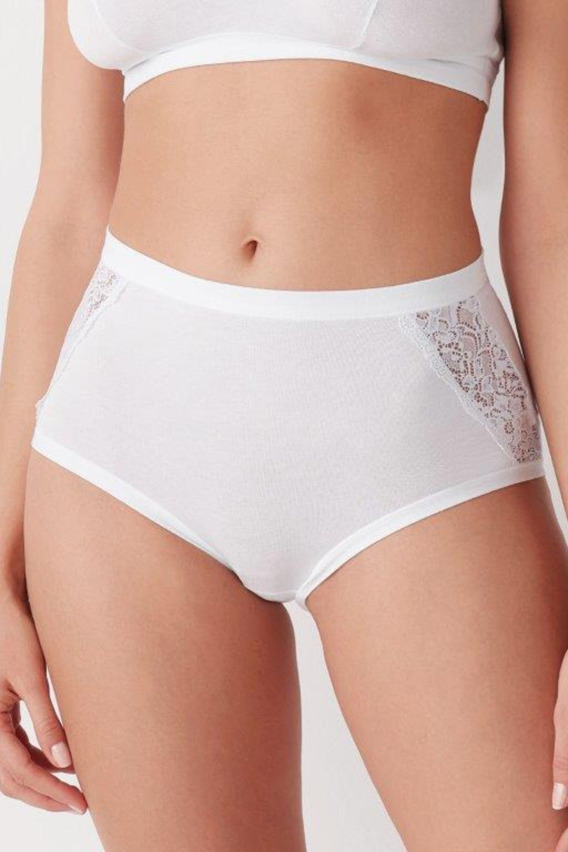 Dámske maxi nohavičky. Boky sú zdobené jemnými čipkovanými vložkami.V balení sú dva páry.