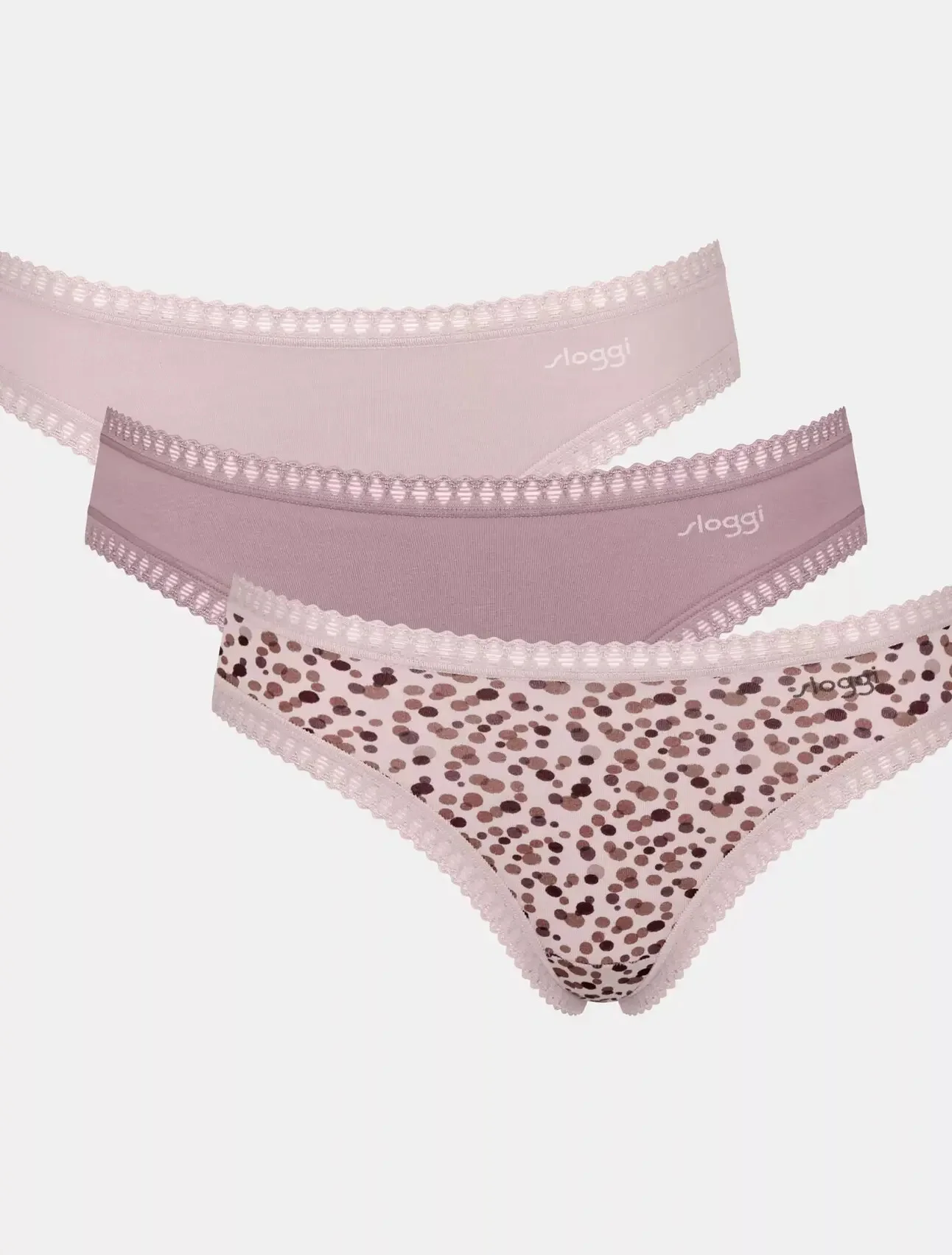 Objavte svoju novú lásku v spodnej bielizni! Tieto mini nohavičky GO Crush sú vyrobené z príjemnej organickej bavlny v rozkošných vzoroch a dodávajú sa v praktických multibaleniach, takže môžete meniť svoj vzhľad každý deň v týždni. balenie 3 kusov mini nohavičiek s úzkymi bokmi Veľmi mäkká organická bavlna s certifikátom GOTS Elastické čipkované lemy pre lichotivý strih Mix jedinečných sloggi potlačí a tónových farieb OEKO-TEX® STANDARD 100, 22.0.22419 Hohenstein HTTI 95% bavlna, 5% elastan