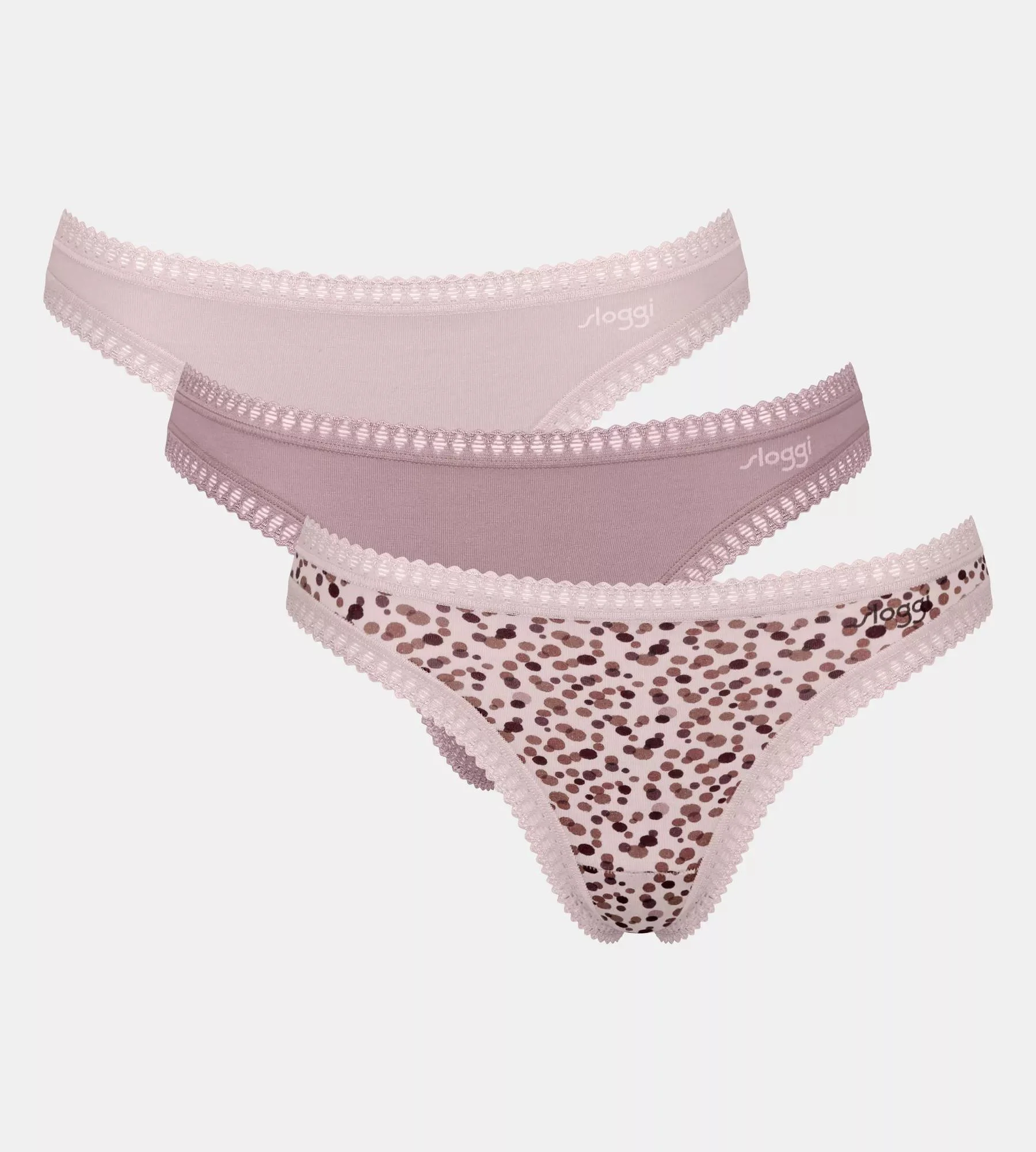 Vylepšite svoju každodennú spodnú bielizeň s týmto multibalením string nohavičiek GO Crush, ktoré sú vyrobené z najpohodlnejšej organickej bavlny v láskyplnom dizajne. Kto hovorí, že základ musí byť nudný? balenie 3 string nohavičiek s úzkymi bokmi Veľmi mäkká organická bavlna s certifikátom GOTS Elastické čipkované lemy pre lichotivý strih Mix jedinečných sloggi potlačí a tónových farieb OEKO-TEX® STANDARD 100, 22.0.22419 Hohenstein HTTI 95% bavlna, 5% elastan