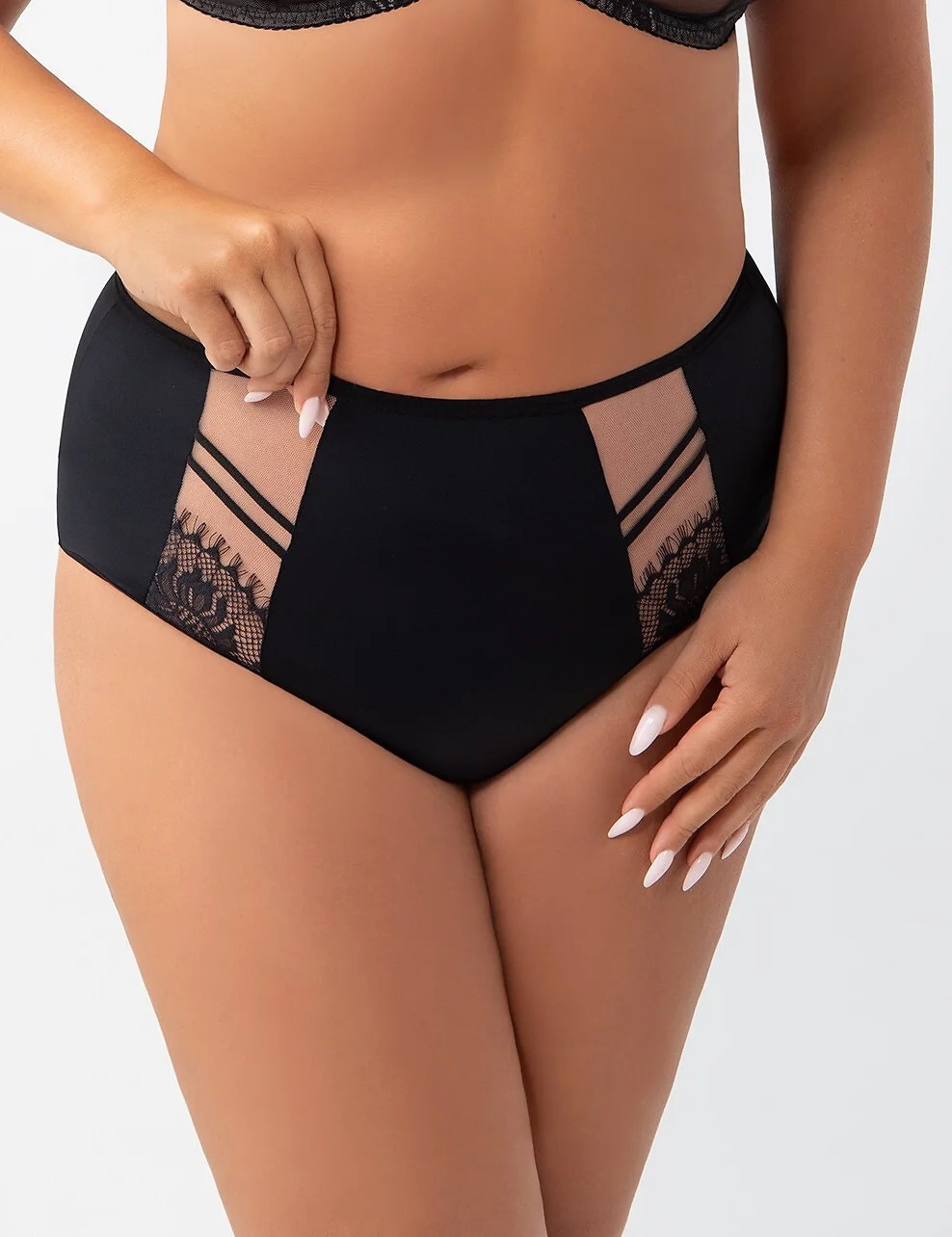 Vysoké a plné dámske nohavičky, ktoré sú vyrobené z hladkého mikrovlákna. Nohavičky sú ozdobené vsadkami z transparentnej sieťoviny s efektnou čipkou s kvetinovým vzorom. Zadný diel modelu je ušitý zo dvojitého tylu. Nohavičky sa pri nosení nekrčia pod oblečením. Zloženie: 90% polyamid, 7% elastan, 3% polyester.