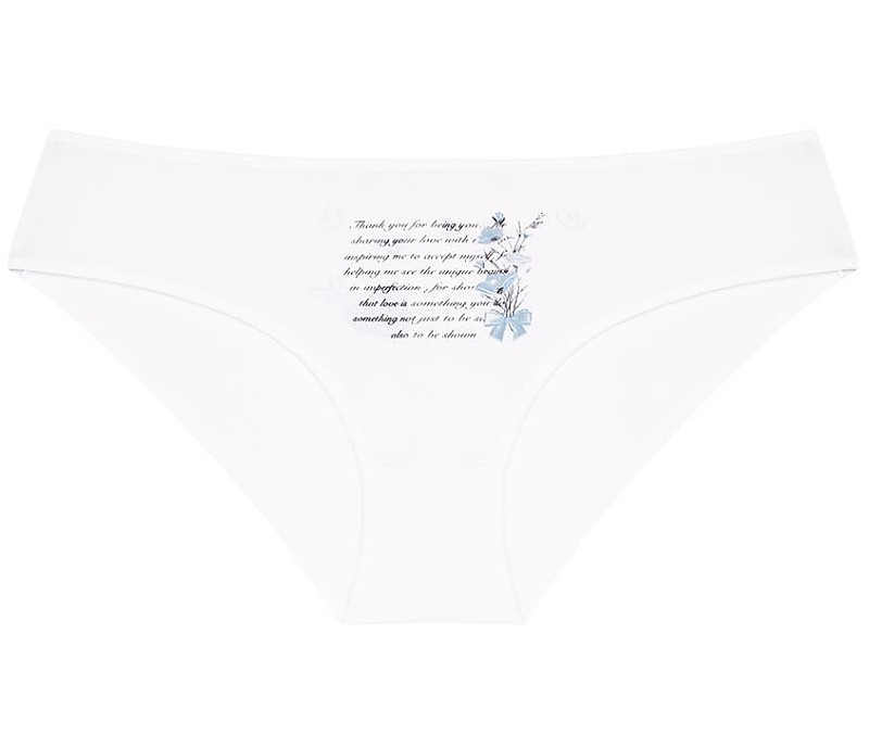 Dámské kalhotky Iva. Dámské kalhotky klasického střihu. Kalhotky jsou ozdobeny potiskem květin a drobným nápisem. Použitý materiál je příjemný a poddajný na dotek.