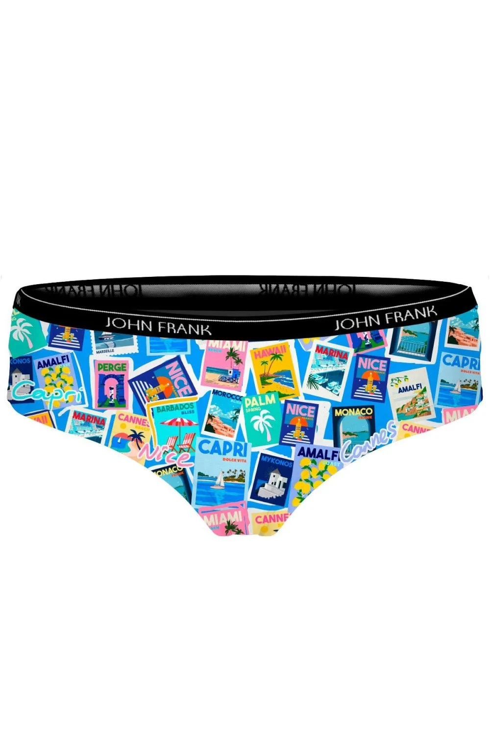 Dámske hipster nohavičky od značky John Frank vyrobené z vysokého podielu bavlny. Nohavičky s módnou potlačou sú veľmi príjemné na dotyk a pohodlné na nosenie. Jemný, stredne široký elastický pás má okolo seba logo John Frank. Do vnútornej časti je zakomponovaný bavlnený klin pre pohodlné nosenie. 95 % bavlna, 5 % elastan.