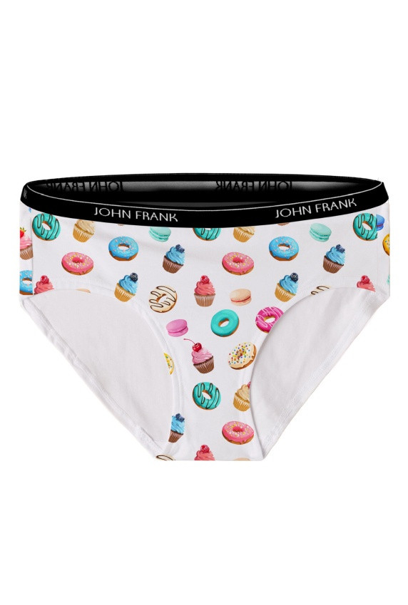 Dámske slipové nohavičky John Frank vyrobené z vysokého podielu bavlny. Nohavičky s módnou potlačou sú veľmi príjemné na dotyk a pohodlné na nosenie. Jemný, stredne široký elastický pás má okolo seba logo John Frank. Do vnútornej časti je zakomponovaný bavlnený klin pre pohodlné nosenie. Zloženie materiálu: 95 % bavlna, 5 % elastan.