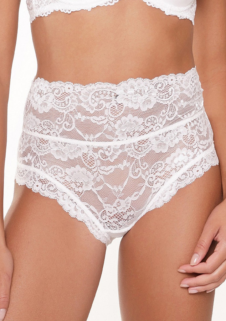 Elegantné nohavičky s vysokým pásom z kolekcie Fantasy 1400B v slonovinovej farbe zaujmú romantickým vzhľadom a zmyselnými detailmi. Sú vyrobené z jemnej elastickej čipky, ktorá pôsobí ľahko a žensky. Predná časť je decentná, zatiaľ čo zadná časť prekvapí sexi šnurovaním, ktoré dodáva celému modelu originálny nádych. Vysoký pás krásne tvaruje postavu a poskytuje pohodlie pri nosení. Ideálne v kombinácii s podprsenkou z rovnakej kolekcie. 86 % polyamid, 14 % elastan