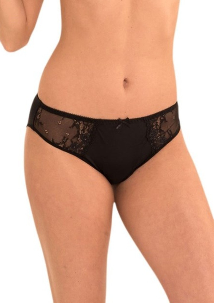 Dámske nohavičky klasického strihu značky Linga Dore v kombinácii hladkej látky a čipky na bokoch. Zadná časť je úplne hladká. Do vnútorného dielu je zapracovaný bavlnený klin pre pohodlné nosenie. Materiálové zloženie: 80% polyamid, 20% elastan.