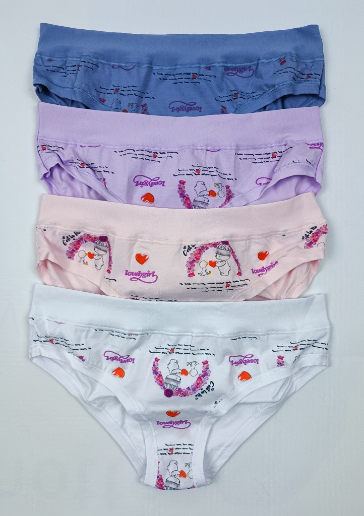 Dámske bavlnené nohavičky od značky Lovelygirl. Klasické nohavičky sú veľmi príjemné na dotyk, hladké a na prednej strane majú jemnú farebnú potlač. Po obvode je pohodlný elastický pás a vo vnútornej časti je všitý bavlnený klin pre pohodlné nosenie. Farbu nohavičiek vám vyberieme náhodne alebo ju môžete napísať do poznámky. Cena je za jeden kus. Sú balené v škatuľke. Materiálové zloženie: 90 % bavlna, 10 % elastan.