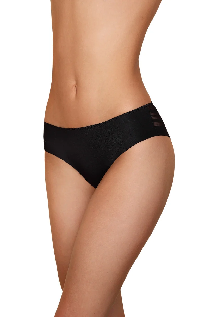 Bezšvové dámske nohavičky, ktoré sú vyrobené z jemného mikrovlákna. Predný diel nohavičiek je hladký. Zadný diel modelu je lemovaný laserom a je ozdobený vsadkami zo sieťoviny. Zloženie: 85% polyamid, 15% elastan.