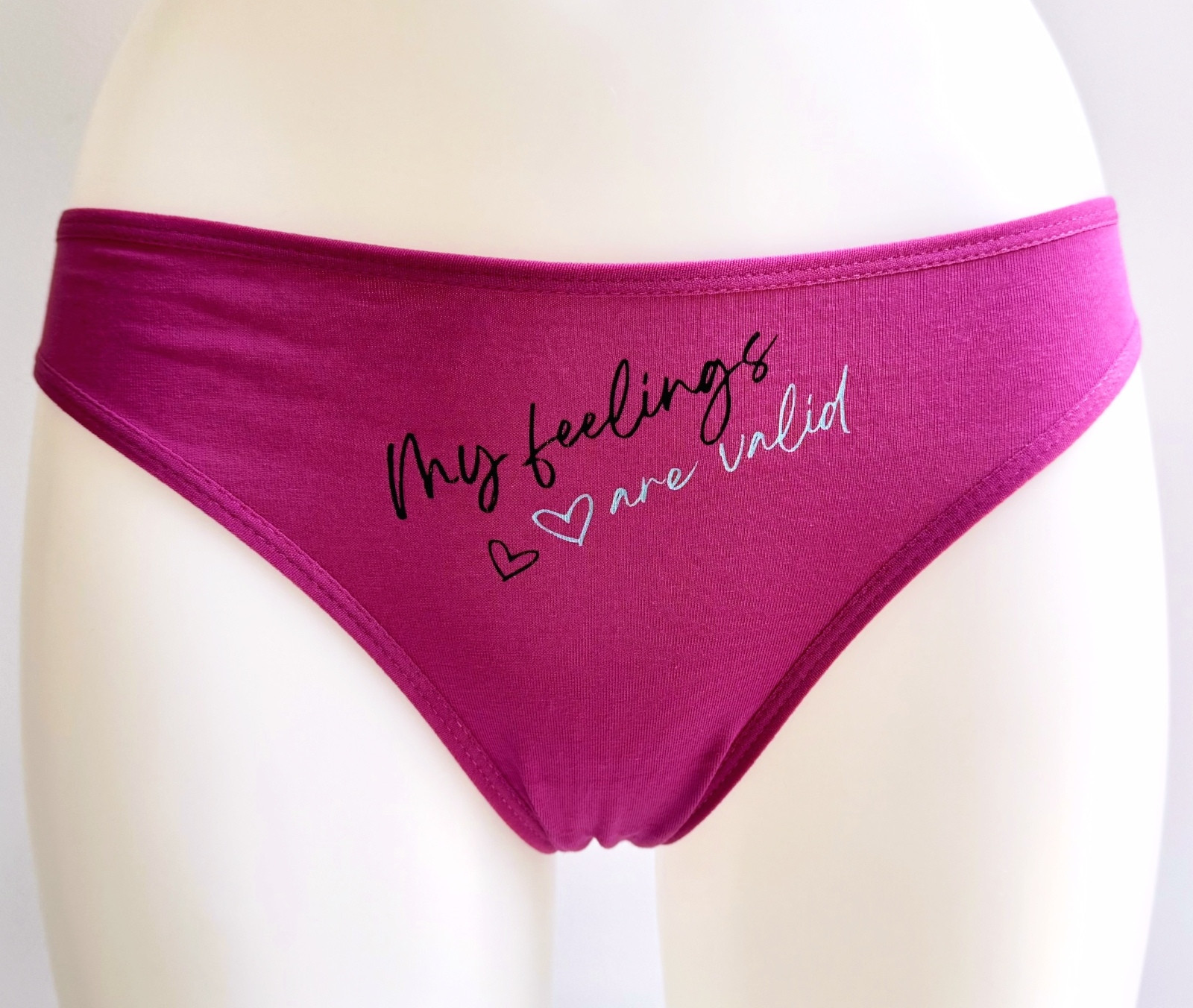Dámské kalhotky brazilky Margaret. Kalhotky brazilky jsou moderní a zároveň i pohodlné, využijete je pro všechny příležitosti. Jsou zdobené nápisem. Materiálové složení: 95% bavlna a 5% elasten. Použitý materiál je příjemný a poddajný na dotek.