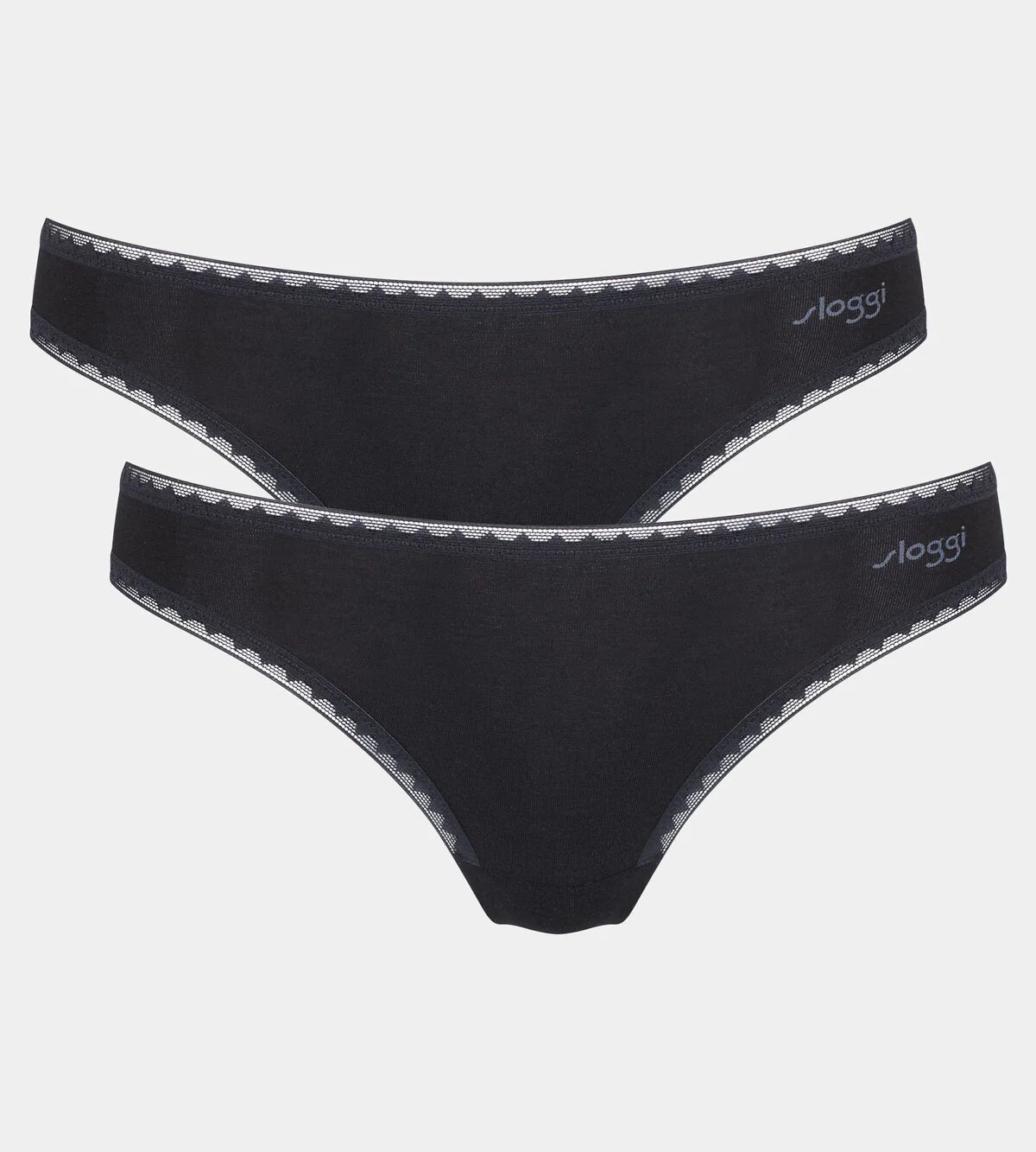 Odolné a mäkké brazílky sloggi Go s úzkymi bočnými dielmi Sedí nízko na bokoch, s jemným krajkovým lemom s geometrickým vzorom Pohodlný, mäkký klin Vyrobené z organickej bavlny, ktorej kvalita je sledovaná a certifikovaná spoločnosťou Sanko Vlákna LYCRA® sa dokonale prispôsobia vášmu telu a doprajú vám maximálnu slobodu pohybu Vyrobené v súlade s normou Öko-Tex® 100 Praktické balenie po 2 kusoch Modelka má na sebe brazílky vo veľkosti S materiálové zloženie: 96% bavlna, 4% elastan Kód produktu: 10207355