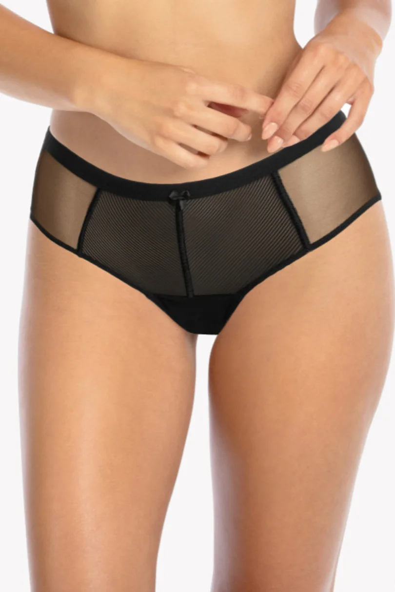 Klasické dámske nohavičky, ktoré sú vyrobené z rebrovaného mikrovlákna. Na zadku je ploché lemovanie. Zloženie: 48% polyamid, 30% polyester, 12% elastan, 10% bavlna.