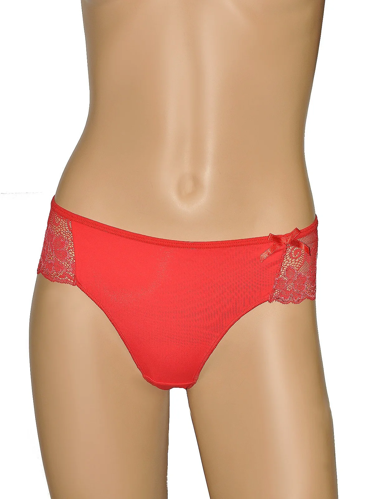 Dámske nohavičky stringo-šortky, ktoré sú vyrobené z mäkkého mikrovlákna. Boky a zadný diel modelu sú ušité z pružnej čipky s kvetinovým vzorom. Zloženie: 85% polyamid, 15% elastan.