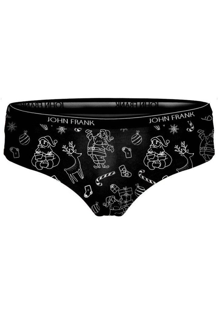 Dámske hipster nohavičky od značky John Frank z limitovanej vianočnej kolekcie. Bavlnené nohavičky s módnou potlačou sú veľmi príjemné na dotyk a pohodlné na nosenie. Mäkký, stredne široký elastický pás má okolo seba logo John Frank. Do vnútornej časti je zakomponovaný bavlnený klin pre pohodlné nosenie. Zhodujte sa s kolekciou ON & ON, dámske nohavičky a pánske boxerky tu nájdete v jednom dizajne, buďte IN so svojím partnerom. 95% bavlna, 5% elastan.