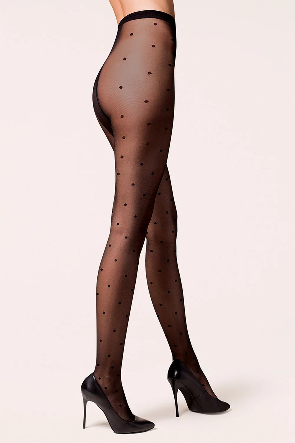 Dámske vzorované pančuchy Puntina. Dámske pančuchové nohavice s obsahom lycrových vlákien. Dámske celoplošné vzorované pančuchové nohavice zdobí jemný bodkovaný vzor. Pančuchové nohavice sú ušité plochým švom, bez zosilneného sedu a naznačenej špičky. Materiálové zloženie: 85 % polyamid, 15 % elastan