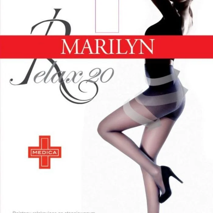 Pančuchy Marilyn RELAX 20 Den. Sú ideálne pre relaxáciu a zdravie, zlepšujú krvný obeh, zabraňujú únave a opuchom. Zloženie: 80% polyamid 20% elastan
