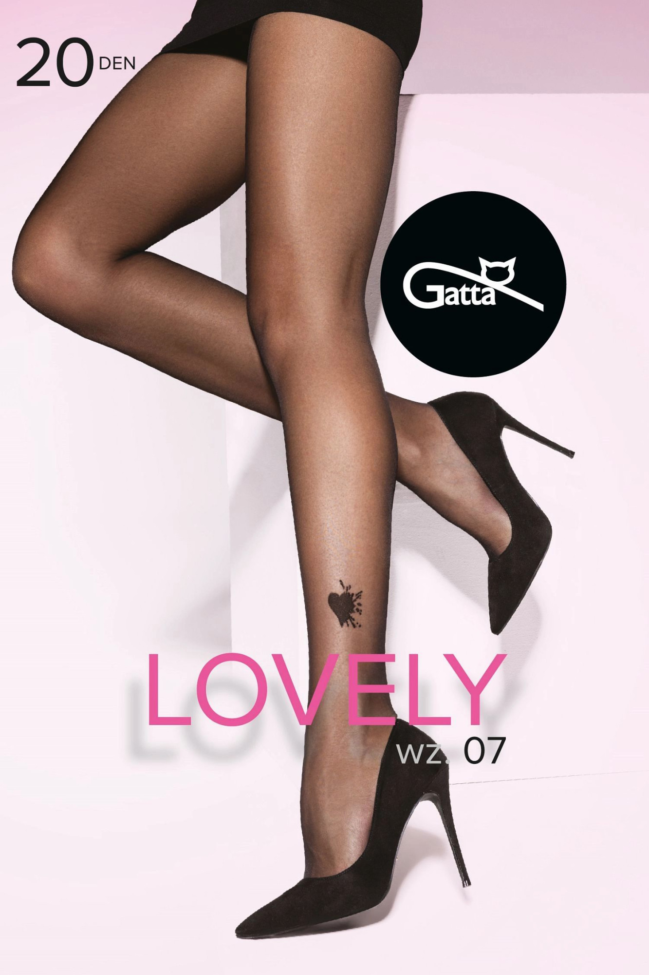 Dámske pančuchové nohavice 07 Lovely GATTA - čierne - vyrobené z pletenej elastanovej priadze - zdobené tetovaním na lýtku - malé zosilnenie na špičke - matné - 20 DEN Zloženie materiálu: 89% polyamid +11% elastan