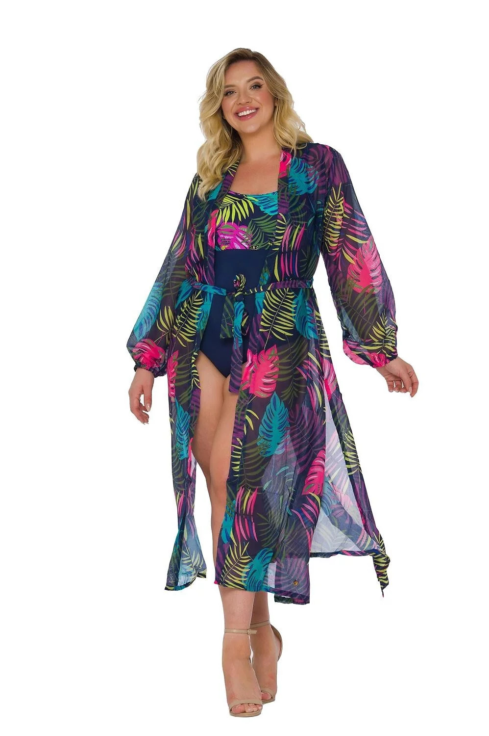 Dámske pareo typu tunika - vzdušné, elegantné - dlhé, vzorované - viazané v páse - dlhé rukávy zloženie: 100 % polyester
