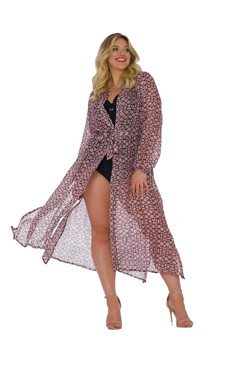 Dámske pareo typu tunika - vzdušné, elegantné - dlhé, vzorované - viazané v páse - dlhé rukávy zloženie: 100 % polyester