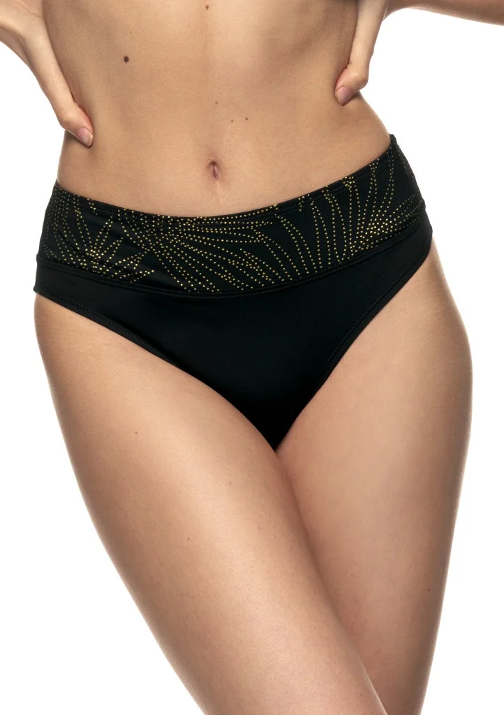 Dámske plavky Fantasy z novej kolekcie Elegant. Tento model v elegantnej čiernej farbe so zlatou potlačou je klasického strihu a má všitý vyšší lem po obvode. Pri väčších veľkostiach je strih nohavičiek zmenšený. Plavky je možné kombinovať so spodným a vrchným dielom v poradí podľa uvedených veľkostí jednotlivých dielov. Plavky sú českej výroby a kúpou tohto výrobku podporíte výrobu českého odevného priemyslu.Materiálové zloženie: 80 % polyamid, 20 % elastan. Nižšie uvedené videá vás môžu previesť technickou špecifikáciou strihov plaviek tejto kolekcie alebo inšpirovať návrhmi jednotlivých kolekcií. Pozrite si, čo sme pre vás pripravili, aby sme vám pomohli zorientovať sa v našej kolekcii plaviek