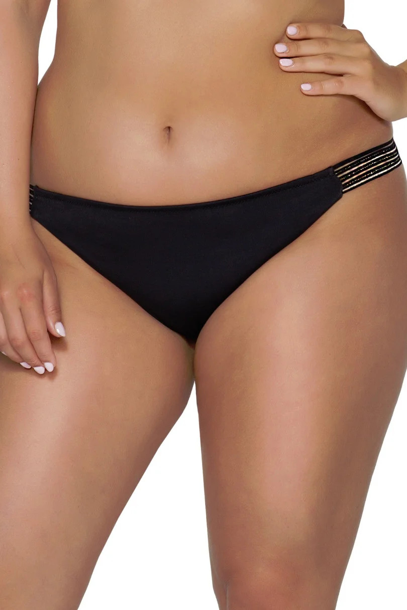 brazílske nohavičky - čierne mikrovlákno - gumičky na bokoch s lesklou lurexovou niťou Zloženie: 80 % polyamid, 20 % elastan