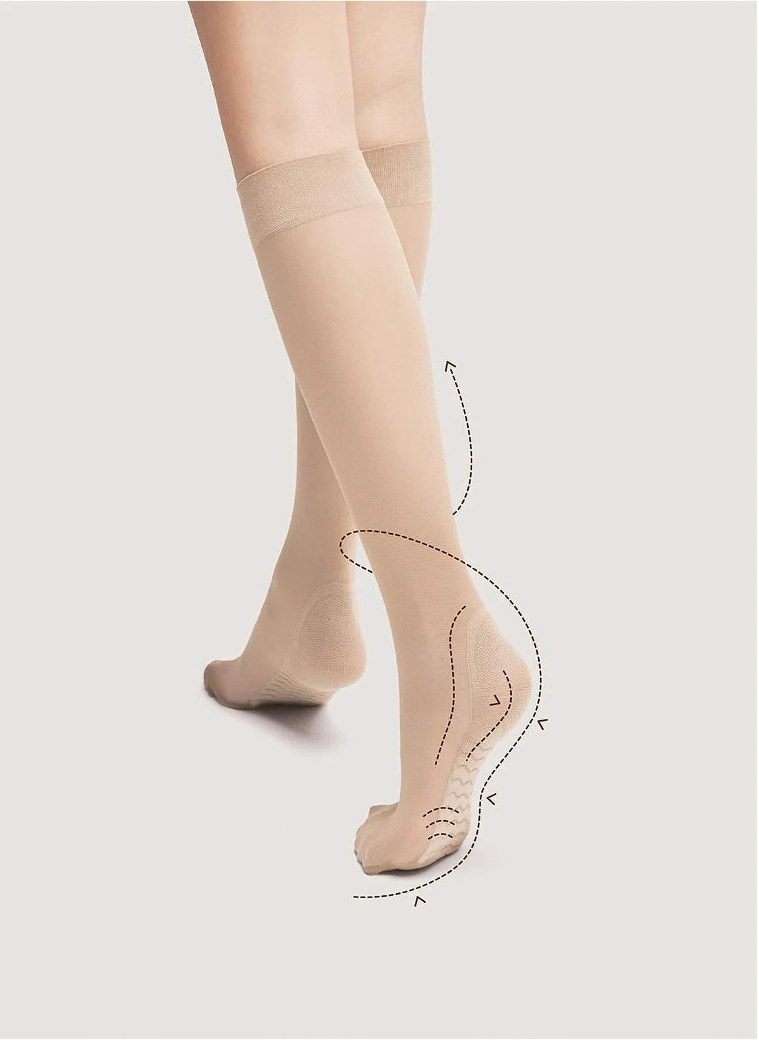 Dámske podkolienky s preventívnym efektom masáže chodidiel as lemom, ktorý netlačí. Vďaka využitiu technológie Silver Fresh zostáva kože suchá a svieži. Preto sa stávajú problémy s nepríjemným množením baktérií a húb minulosťou. Zloženie: 80% polyamid, 20% elastan.