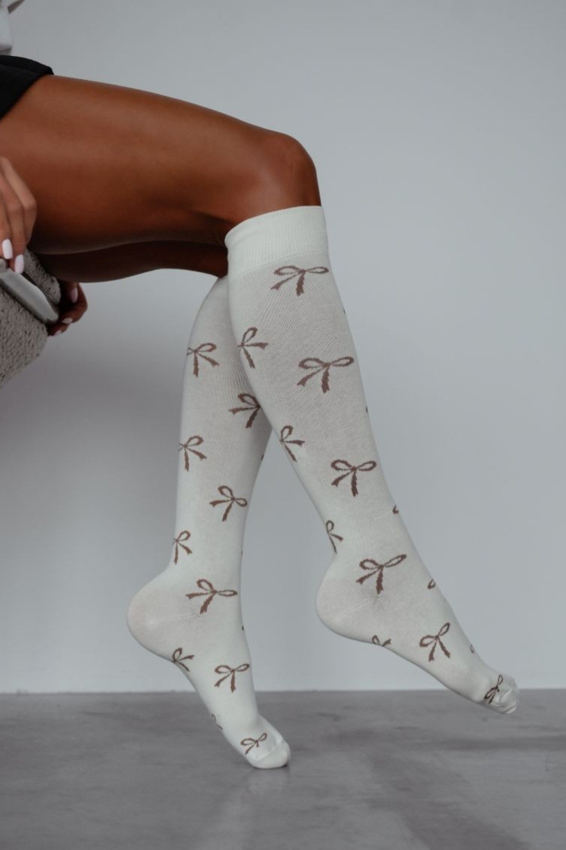 Eleganckie podkolanówki damskie we wzór uroczych kokardek to doskonały sposób na podkreślenie kobiecego stylu w każdej stylizacji. Wykonane z wysokiej jakości, miękkiej i przyjemnej w dotyku bawełny, zapewniają komfort noszenia przez cały dzień. Dzięki elastycznemu wykończeniu podkolanówki idealnie przylegają do nogi, nie zsuwają się i gwarantują pełną swobodę ruchów. Subtelny wzór w kokardki nadaje im wyjątkowego charakteru, dzięki czemu świetnie sprawdzą się zarówno na co dzień, jak i jako modny dodatek do bardziej eleganckich outfitów. To połączenie wygody, jakości i stylu, które przyciąga uwagę.