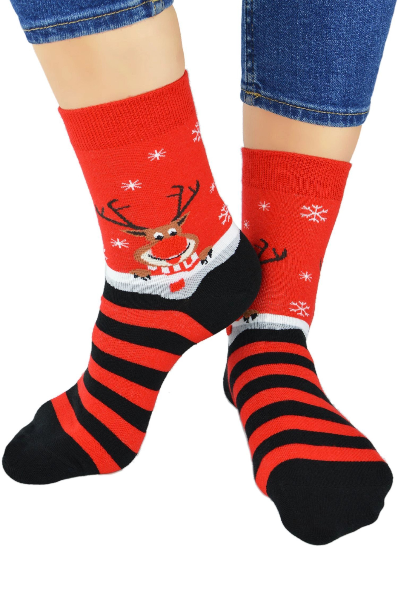 Dámske ponožky 100 W 09 NOVITI - čierne - z mäkkej bavlny - profilovaná päta - veľmi pohodlné - vianočný motív Zloženie materiálu: 75% bavlna + 22% polyester + 3% elastan