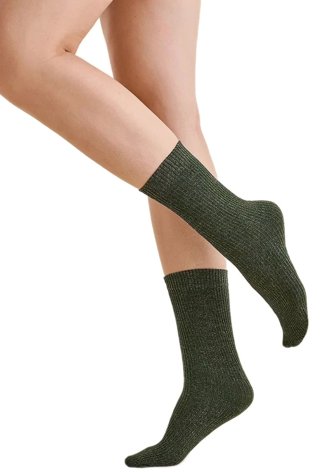 Dámske ponožky 1223 Nora green GABRIELLA - zelená farba - vyrobené z lesklej priadze s elastickými vláknami - zosilnená päta a predná časť - rebrované - neťahajú sa Zloženie materiálu: 84% polyamid + 17% metalická priadza + 3% elastan Tabuľka veľkostí XS S M L XL 1 2 3 4 5 Výška (cm) 152-158 158-164 164-170 170-176 176-182 Obvod pása (cm) 84-88 88-96 96-108 106-120 112-128